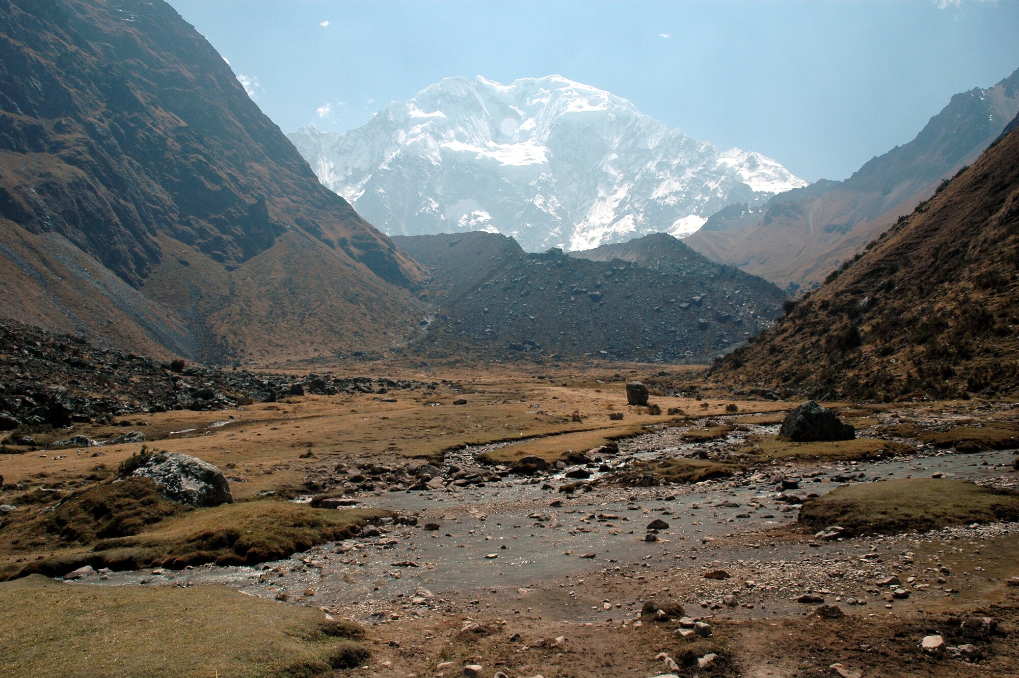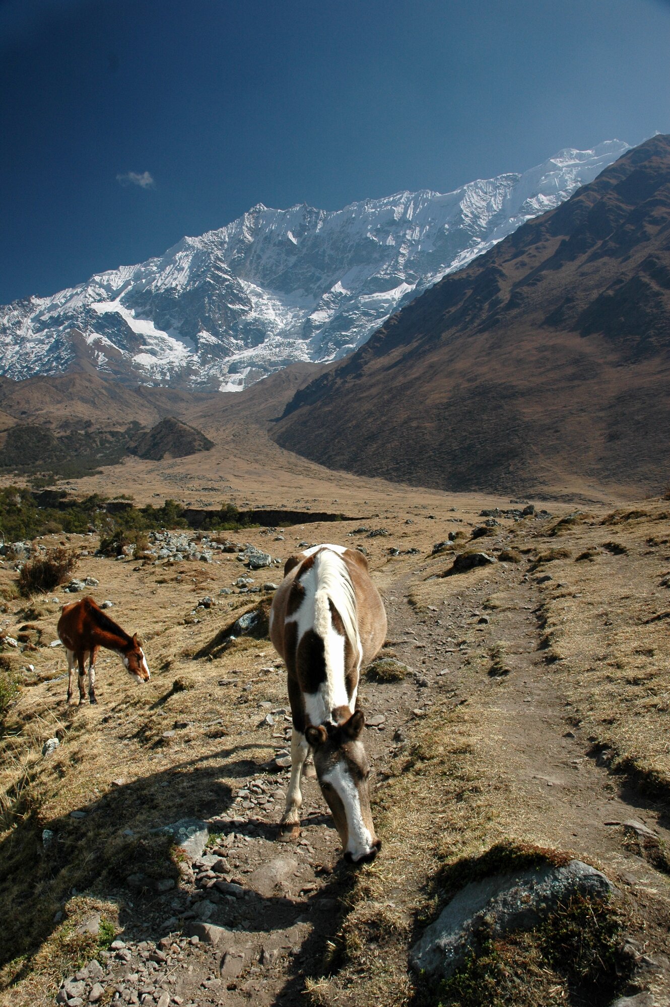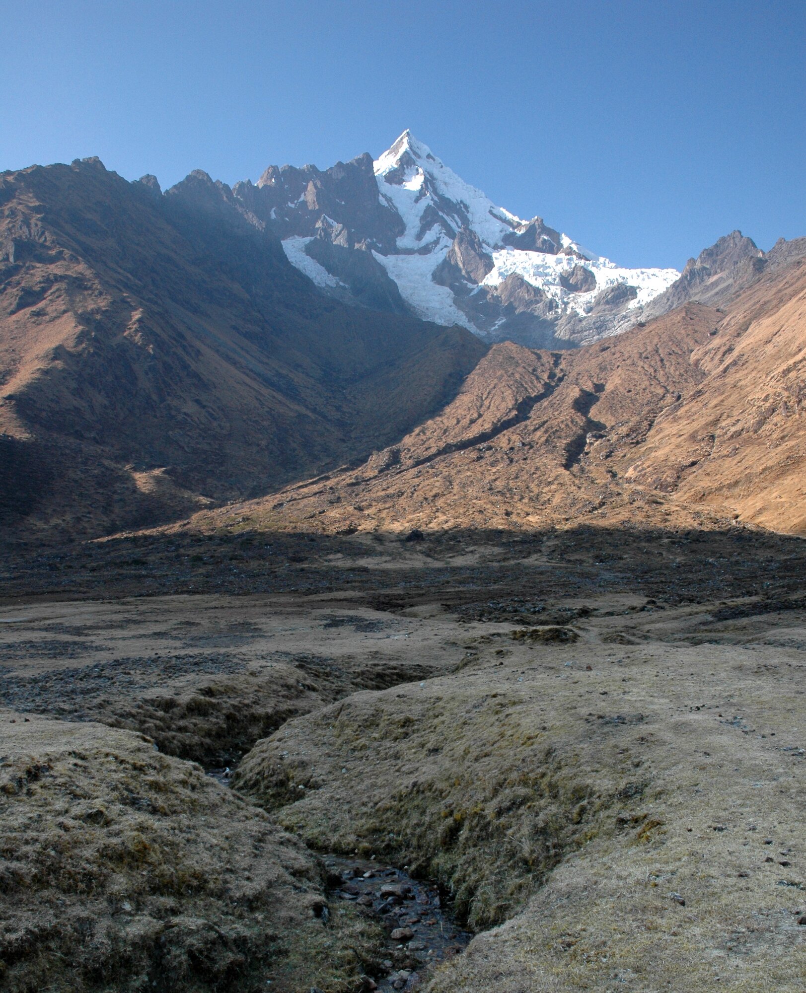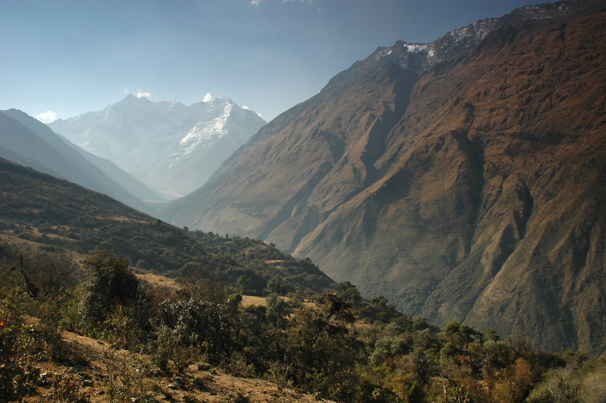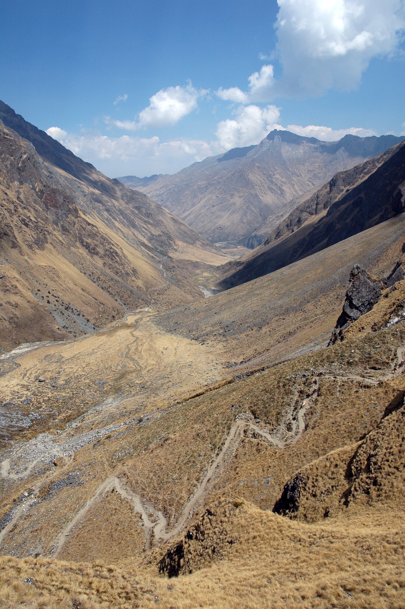 The first trek in the Ands is always an acclimatization one. Ours took us from the village of Mollepata all the way to Machu Picchu. The first two days we were climbing from less than 3000 meters into a saddle at almost 4700. Afterwards we descended to "only" about 2000 meters where bananas and oranges were growing.
