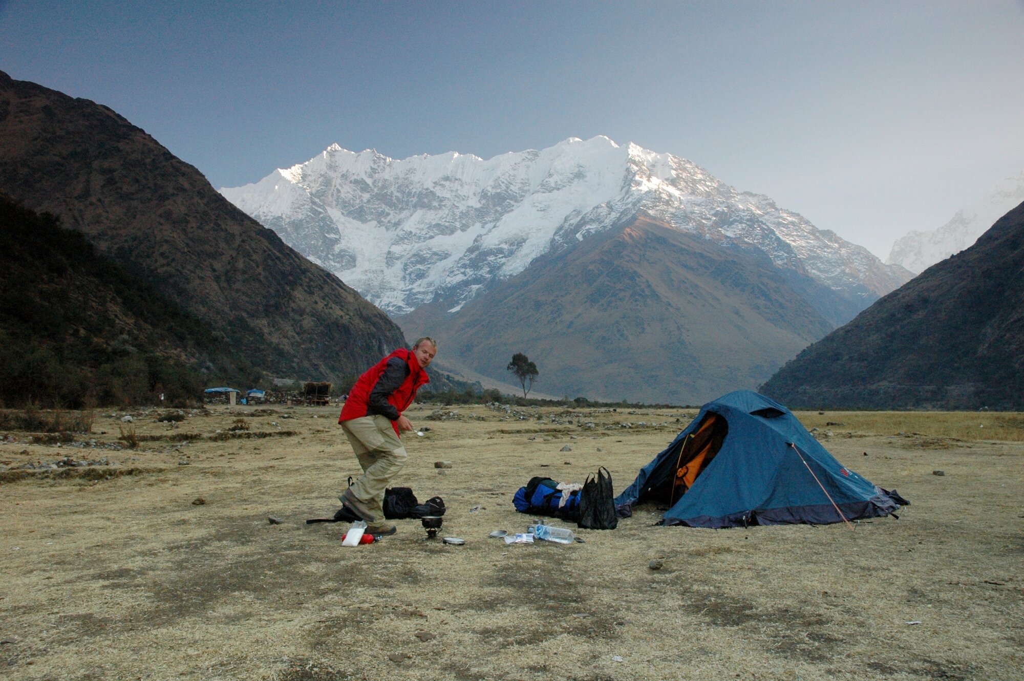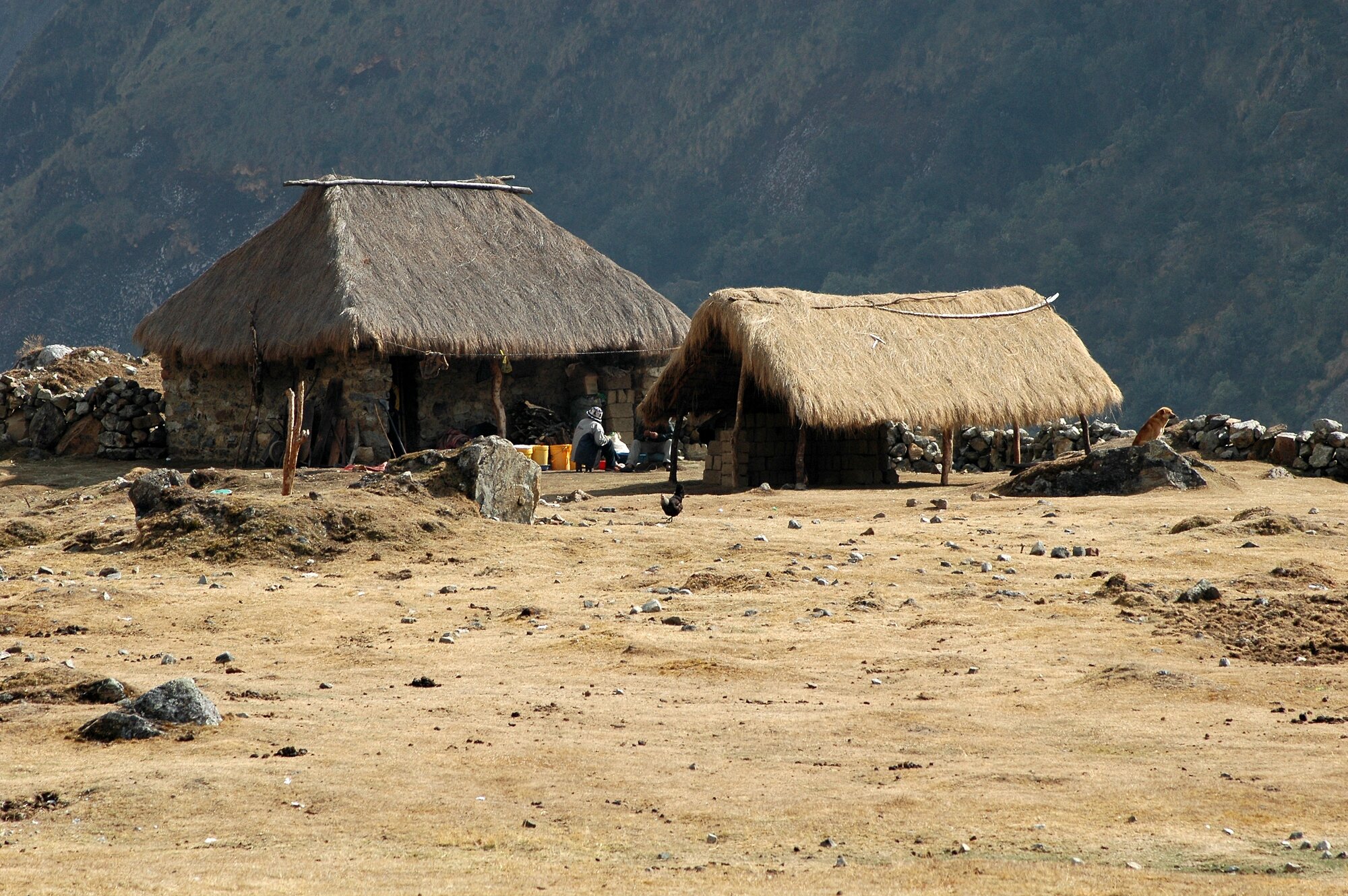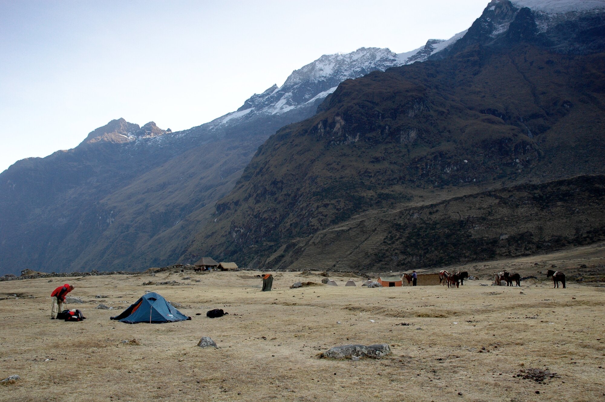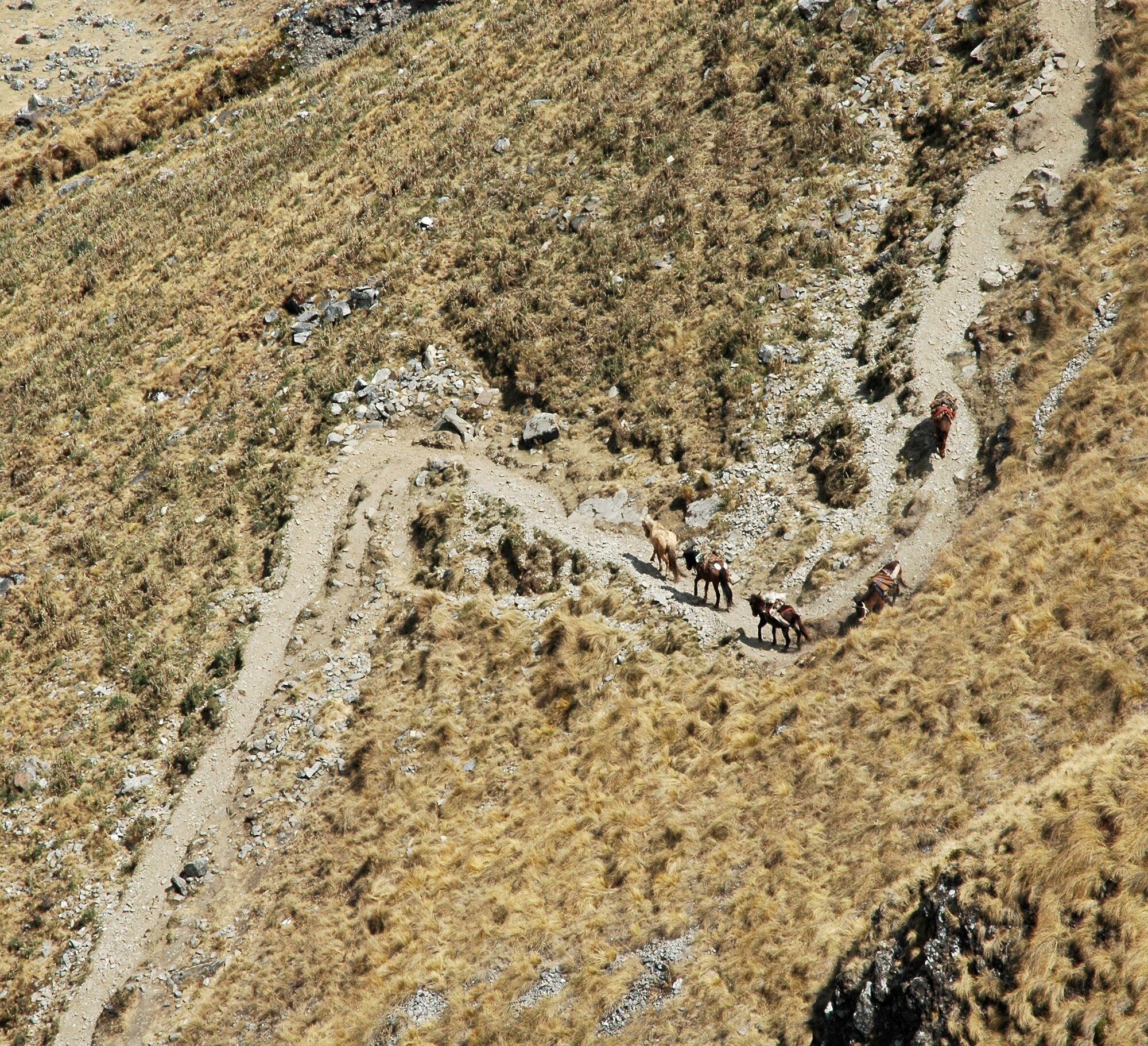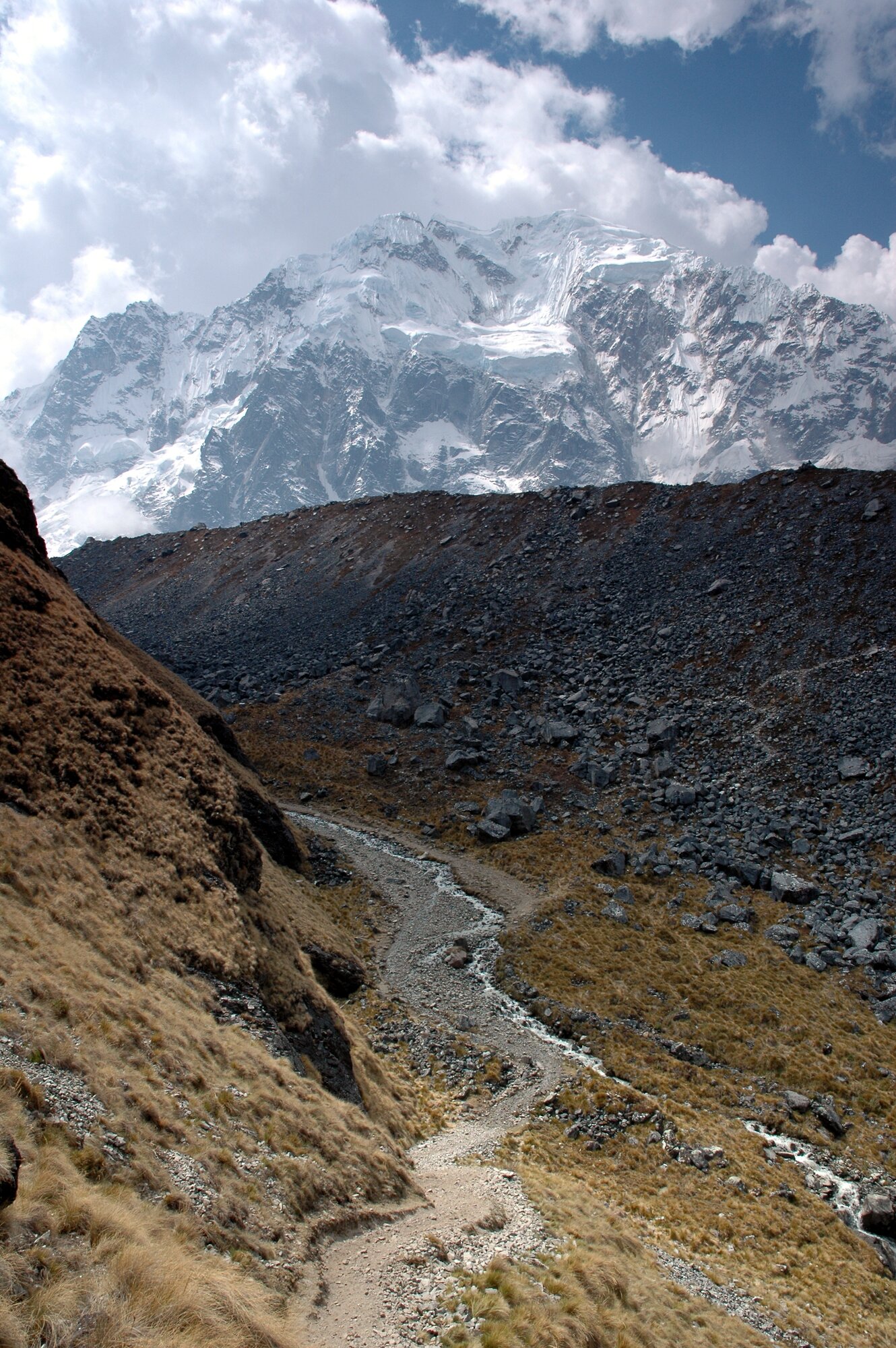 The first trek in the Ands is always an acclimatization one. Ours took us from the village of Mollepata all the way to Machu Picchu. The first two days we were climbing from less than 3000 meters into a saddle at almost 4700. Afterwards we descended to "only" about 2000 meters where bananas and oranges were growing.