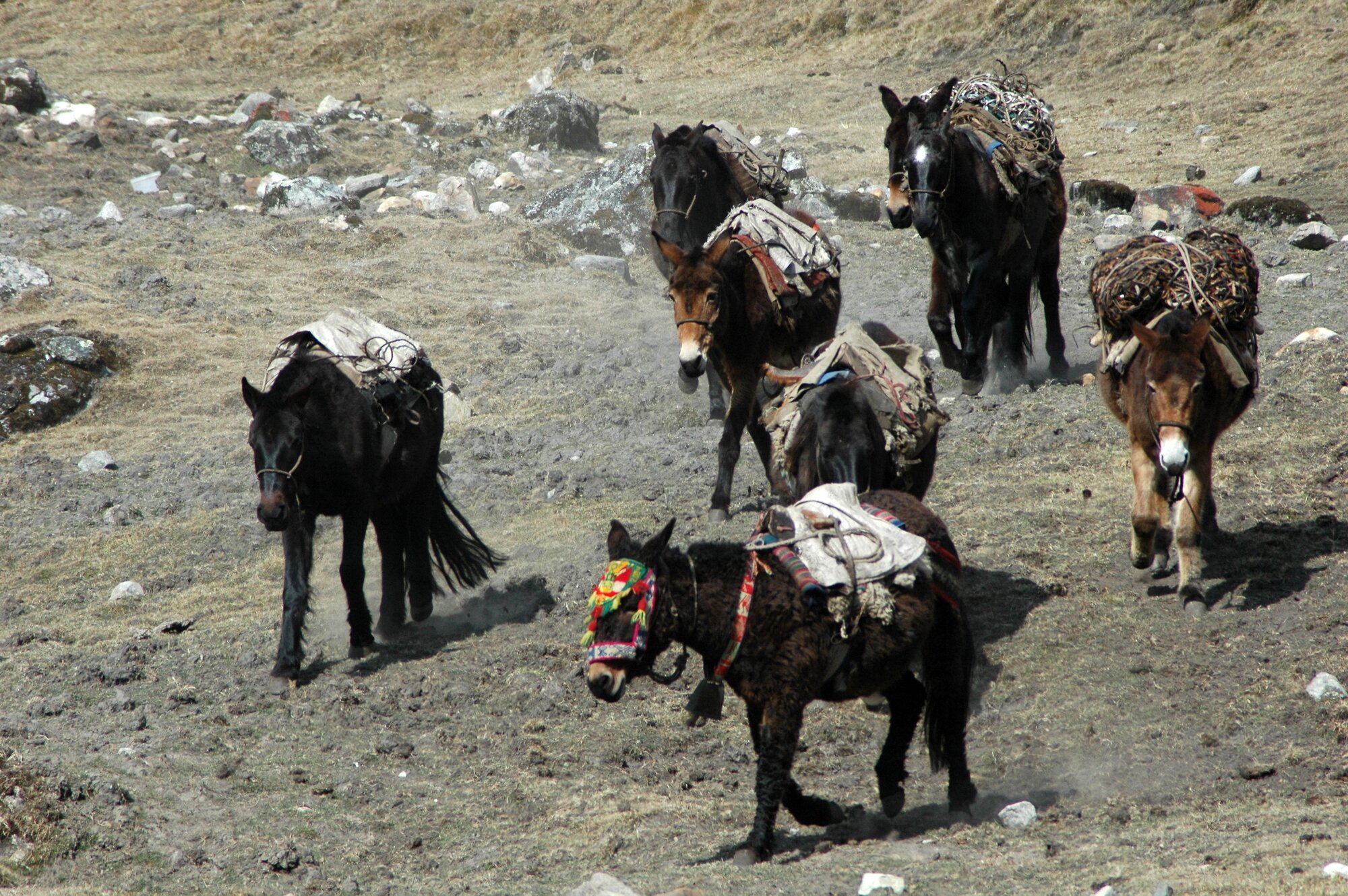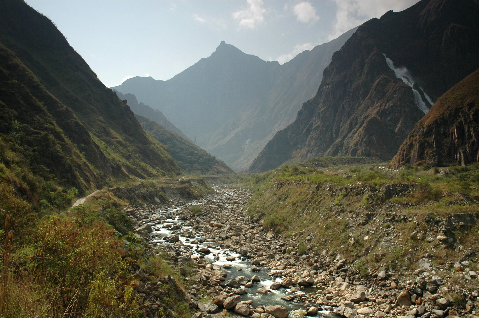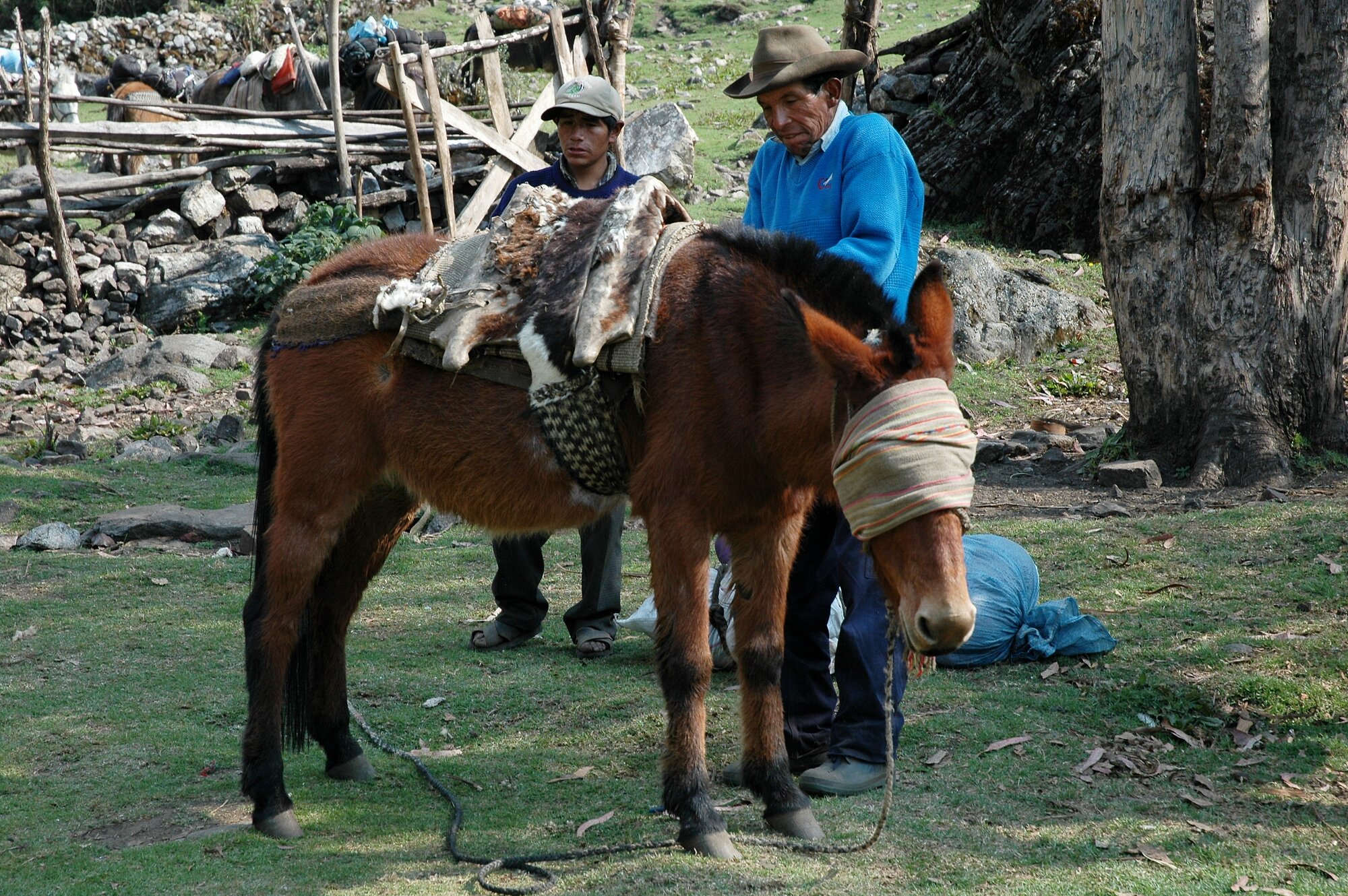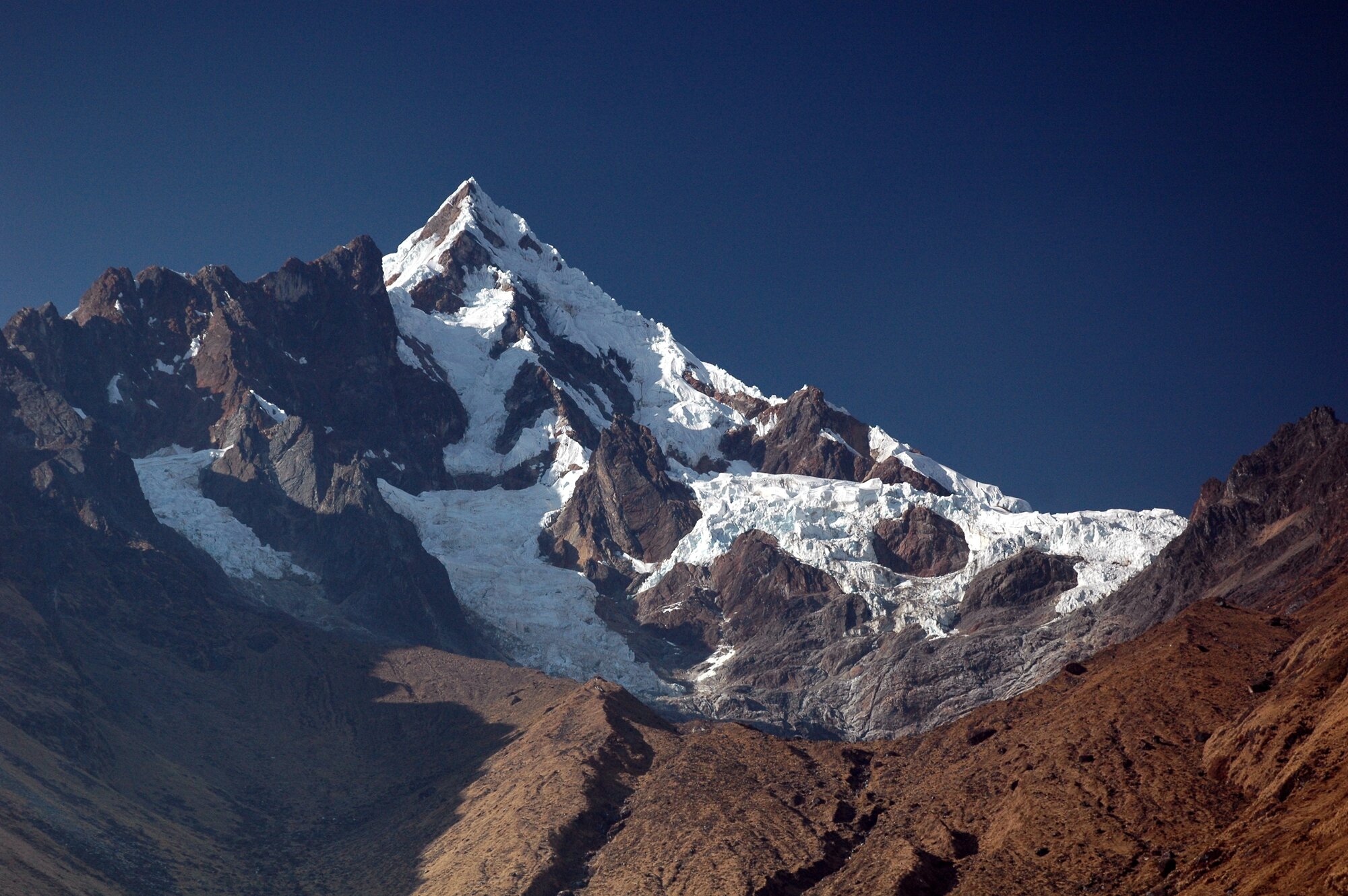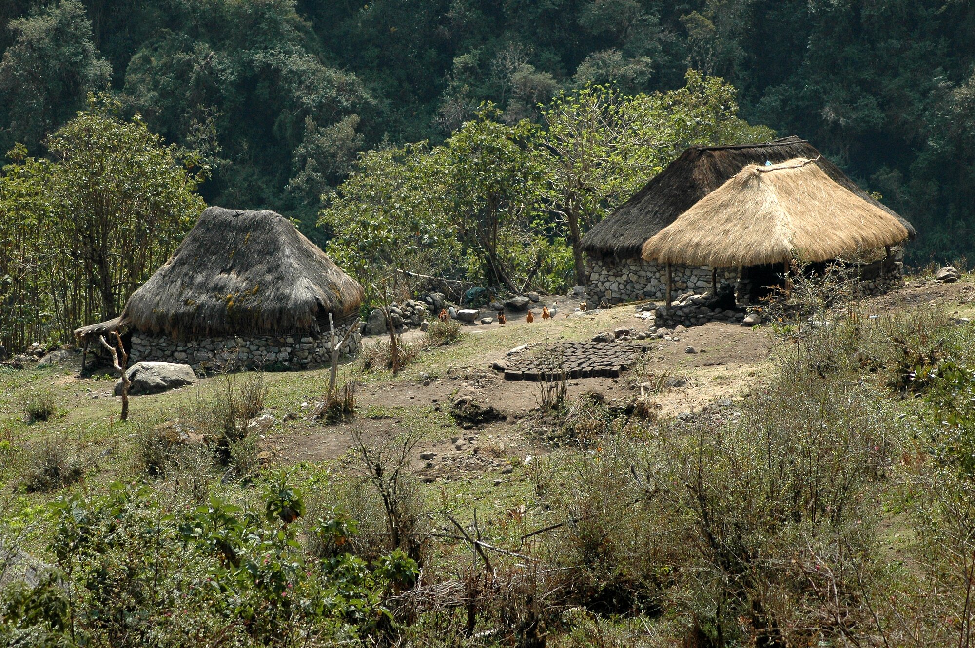 The first trek in the Ands is always an acclimatization one. Ours took us from the village of Mollepata all the way to Machu Picchu. The first two days we were climbing from less than 3000 meters into a saddle at almost 4700. Afterwards we descended to "only" about 2000 meters where bananas and oranges were growing.
